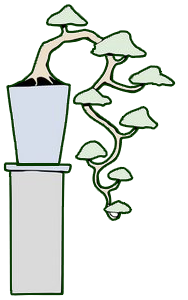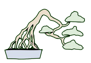 As a result of the wind blowing in one dominant direction or when a tree grows in the shadow and must bend toward the sun, the tree will lean in one direction. With Bonsai, the leaning style should grow at an angle of about 60 – 80 degrees relative to the ground. The roots are well developed on one side to keep the tree standing. On the side toward which the tree is leaning, the roots are clearly not as well developed. The first branch grows opposite the direction of the tree, in order to create a sense of visual balance. The trunk can be slightly bent or completely straight, but still be thicker at the bottom than at the top.