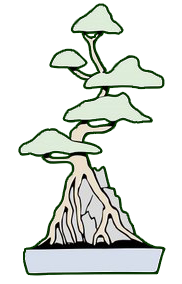 In this style the roots of the tree are growing in the cracks and holes of the rock. This means that there is not much room for the roots to develop and absorb nutrients. Trees growing in rocks will never look really healthy, thus it should be visible that the tree has to struggle to survive. It is important to fertilize and water often, because there is not much space available to store water and nutrients. The rock in which the Bonsai grows is often placed in a shallow pot, which is sometimes filled with water or fine gravel.